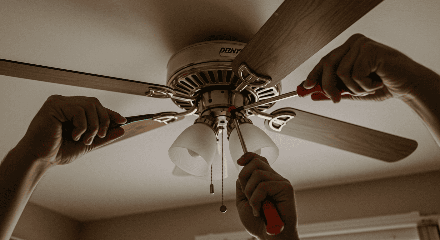 Learn how to fix a wobbly ceiling fan in Cuenca. This guide covers tightening blade screws, canopy, and downrod for safer, quieter operation.