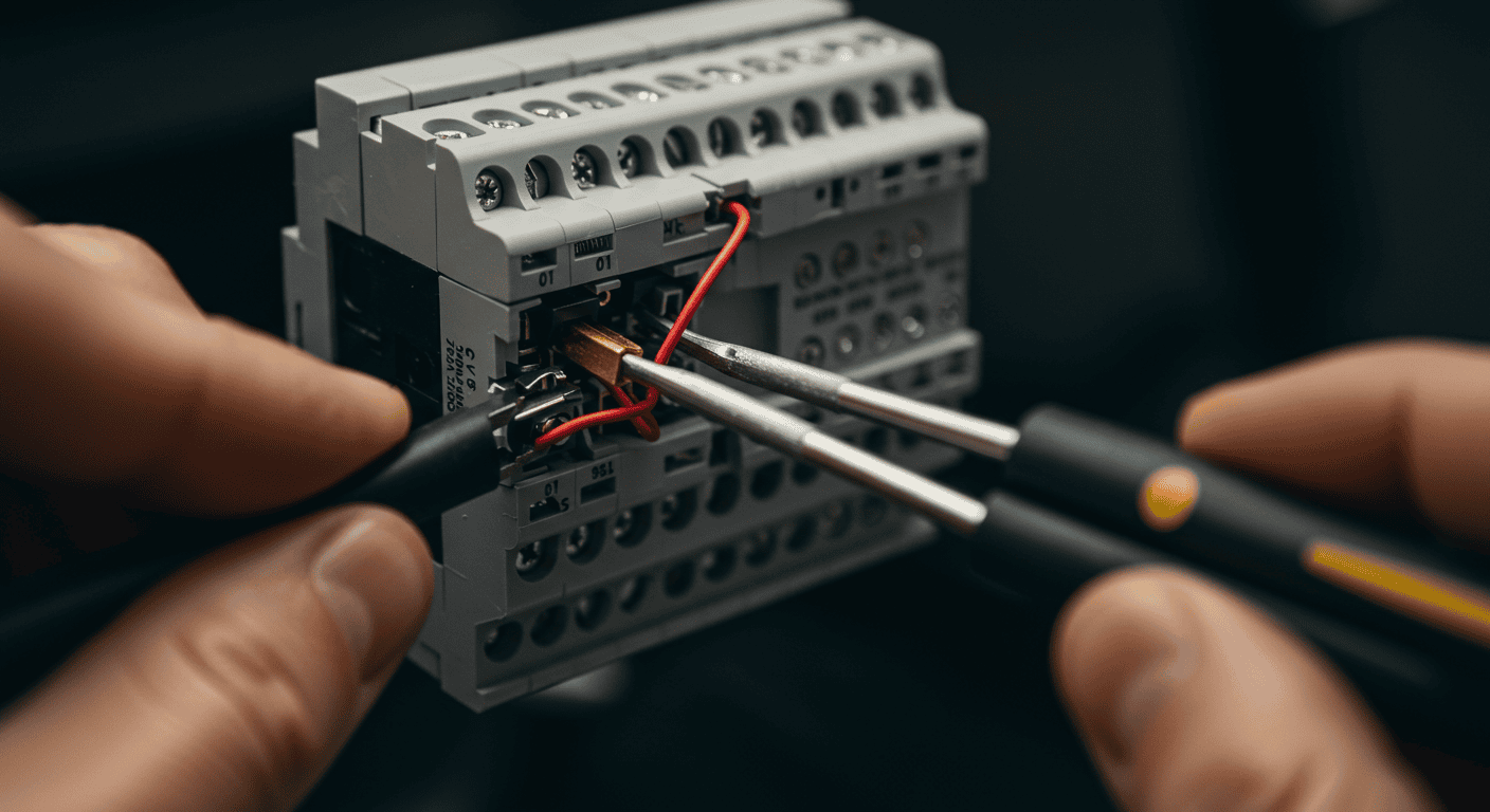 Repairing a loose connection on a terminal block for low-voltage systems.